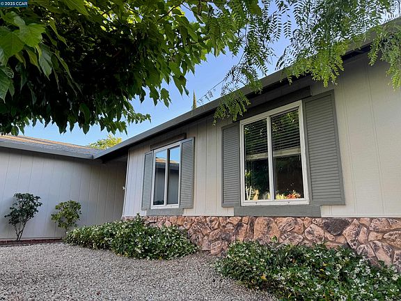 Stunning single story rancher offers the best of California living. Three bedrooms/two full bath home on cul-de-sac features luxurious carpeting, rich laminate flooring, open quartz-tiled kitchen with built-in microwave, butler's pass-through, outstanding family room with fireplace insert, splendid ceiling fans, spacious primary bed/bath with mirrored closet doors, low-maintenance, ultra-private yard space with potential to grow your own vegetables, awesome storage shed, fantastic opportunity to own close to BART but feels like a million miles away. Washer/dryer/refrigerator stay.
