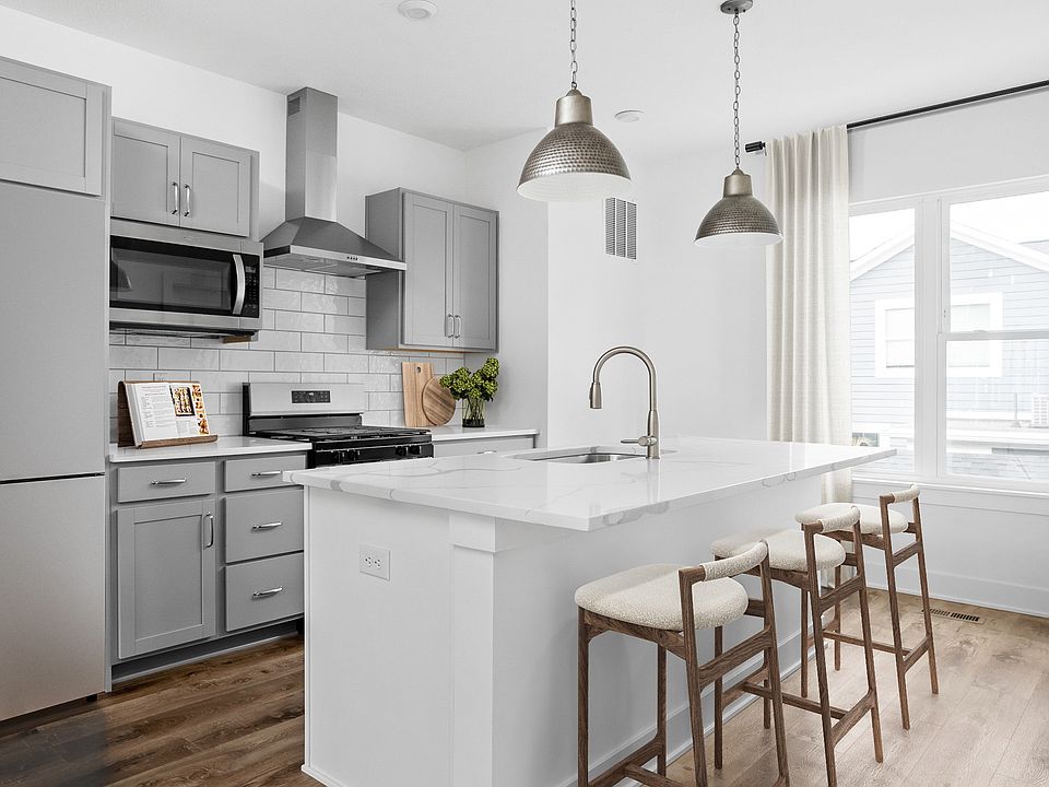 This unit is ready for immediate move-in! The Tannin with Terrace floor plan features two bedrooms, two full and one half baths, and an office for the perfect living combination. A one-car attached garage and office with a closet is located on the first floor, ideal for guests or an in-law suite. The second level features an open layout in which the kitchen and island opens up to dining and living area. The owner's suite is on the third floor and features an impressive bath with double vanities and large walk-in shower. Start or end your day on the covered terrace or in your loft space, enjoying the city views.