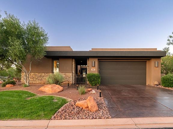 Experience refined desert living in this former Parade of Homes, perfectly positioned in the highly sought-after Escapes at Entrada community. With incredible, unobstructed panoramic views of Snow Canyon and the surrounding mountains, this residence is designed to capture the natural beauty of Southern Utah while offering the best in modern comfort. Featuring 4 spacious bedrooms and 4.5 bathrooms, including a detached casita ideal for guests or private retreats, every space has been thoughtfully designed with numerous upgrades and an elevated attention to detail. A spacious front courtyard welcomes you with warmth and privacy, setting the tone for the elegance within. The 2.5-car garage provides ample room for vehicles and storage, while the heart of the home opens seamlessly to outdoor living. An oasis for entertaining, the living and dining rooms feature sliding doors that create a natural flow to the outdoors, where guests can enjoy three distinct seating areas in the north-facing backyard. Complete with a built-in barbecue, cozy fire pit, and breathtaking views, this space was designed to make the most of Entrada's extraordinary setting. Floor-to-ceiling windows and open living spaces highlight the surrounding red rock beauty, blending indoor elegance with outdoor serenity. This home truly combines luxury finishes, thoughtful design, and a one-of-a-kind locationoffering an unmatched lifestyle at Entrada.