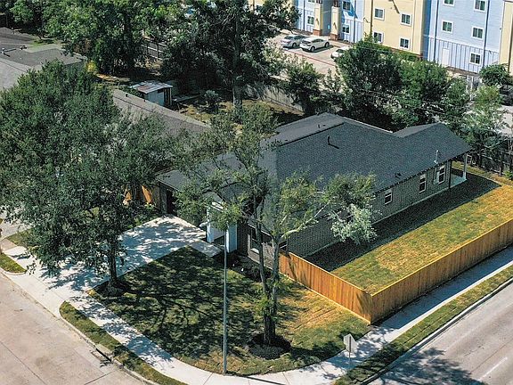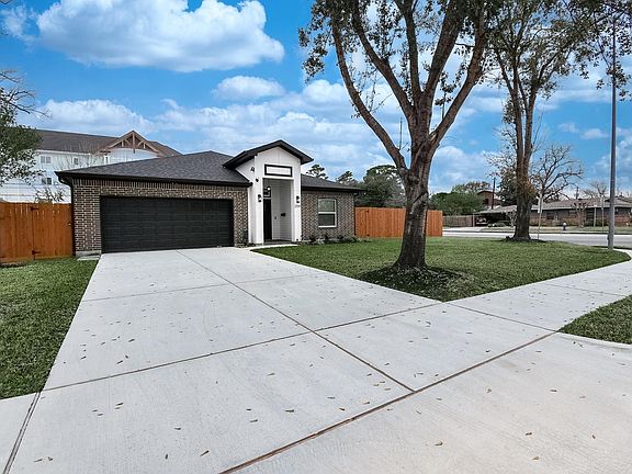 Don't miss VIRAL VIDEO-Click to View! Striking custom-built home completed in late 2024 & is now offered to its very 1st buyer. Situated on an expansive corner lot larger than most neighboring homes & shaded by mature trees, this elegant residence is located in heart of Spring Branch surrounded by new construction & rising property values. This spacious home boasts 3–4 bedrooms/ 3 full baths in a thoughtfully designed open-concept layout. The island kitchen anchors the home w/ quartz countertops, stainless appls & 42" cabinetry flowing seamlessly into family & dining areas. Custom touches include built-in buffet & solid "hidden door" panel to garage. Family room w/ luxury plank flooring & carbon-free electric fireplace overlooks the covered patio. Primary suite features dual sinks, glass shower & spacious walk-in. Flexible bonus room for study or 4th B/R. Fenced yard with 19’ x 8’ covered patio. EZ access to Beltway 8, 610 & 15 mins to Galleria & CityCentre. Zoned to Spring Branch ISD!