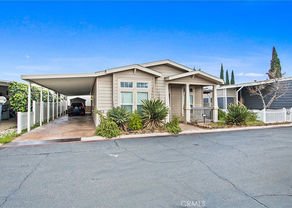 Talk about a show-stopper. Welcome to this beautiful ground-level double-wide home. This 3 bedroom 2 bath home has been kept in immaculate condition. When you walk into this open floor plan you won't feel like you are in a manufactured home at all. A large kitchen with plenty of storage is any chef's dream. The home has large bedrooms and a fenced yard with an insulated patio cover perfect for any night. There is also a nice little side yard. This home is a must-see!! Near pool, clubhouse, and gym. Great community. Close to freeways and shopping! The home is being sold in as-is condition. The seller will not bed doing any repairs.