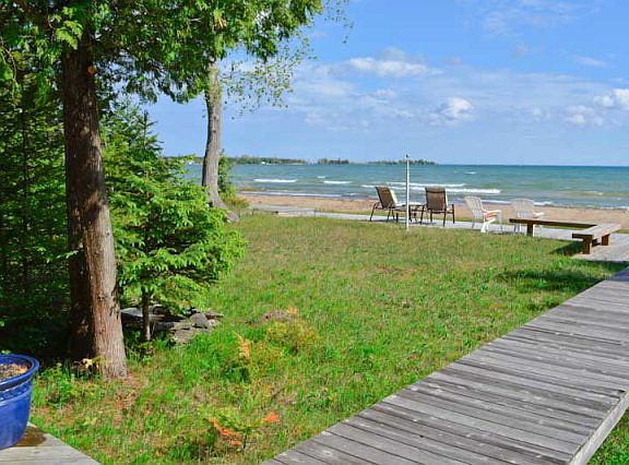 Scenic Ridges Road is among the most iconic addresses in Door County. This exceptional, quality-built, gorgeously remodeled residence fits in beautifully with these surroundings. The south-facing home features 100 feet of sand beach, panoramic views of the harbor, plus gorgeous landscaping, hardscape and decks. Indoors the home has 2,400 sq.ft. of living area plus an inviting sun room. There are four bedrooms and four baths, a lovely open concept living-dining area with window upon window capturing the views, and a spectacularly appointed kitchen. The bathrooms too offer quality fixtures, tile and stone. The property is adjacent to the Ridges Sanctuary and Tofts Point for the nature lover, while downtown Baileys Harbor is mere moments away.