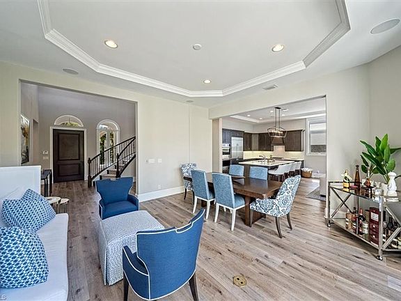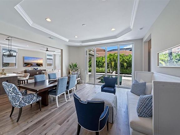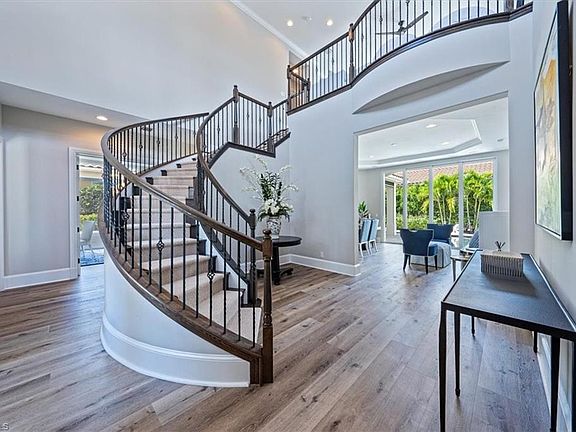 Excellent value! Open and bright 4-5 bedroom home built for family & entertaining yet designed to be comfortable for a couple & offered furnished. 4,462 sq ft on 2 levels, there are 2 principal suites & a large loft area with endless possibilities. A gracious foyer with elegant staircase welcomes guests & flows into the living room where a wall glass looks out to the very private dark bottom pool and spa with all day sun. The plan was opened so that the kitchen, family room and living room all function as one space allowing maximum usability. The kitchen is beautifully appointed and has a large pantry. It beckons gathering at the large island. Sliders lead to a covered lanai with outdoor kitchen & electric screens. Principal suites have excellent closets & large baths with both tubs and glass showers. Upstairs guest rooms also have great closets & two exposures allowing maximum natural light. Wired for home automation, there are speakers throughout. All of this is set in unmatched Grey Oaks with 3 championship courses, huge wellness center, multiple dining venues, tennis & pickle ball complex & resort pool. Minutes from 5th Ave & beach.