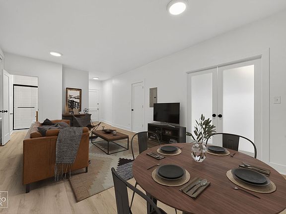 Step into a spacious open-concept layout featuring a large living room ideal for relaxing or entertaining. Just off the living area, one of the three bedrooms is enclosed with double doors, making it a versatile space that can serve as a bedroom, home office, or formal dining room.