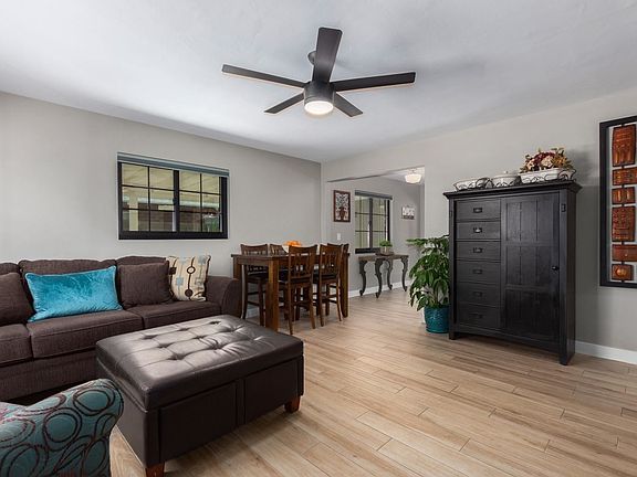 Set up perfectly to work from Home! Immaculate Open & Spacious. You'll love this well maintained, remodeled 2 Bedroom 1 Bath Home which offers an Open Living Concept with expansive Wood Look Tile flooring. Enter into your Beautiful Open Living Room situated off a Gorgeous Eat-in Kitchen for great together time. Kitchen boasts White Shaker Cabinetry with Soft Close Cabinet Doors, Hand-set Subway Tile Backsplash, Fireclay Farmhouse sink, sparkling Quartz Countertops, recessed lighting & SS Appliances. Generous sized Bedrooms with neutral carpet. Remodeled Bathroom features Charming Pedestal Sink, delicate handset Subway Tile & Bathtub. The Backyard is large and open for the whole family.