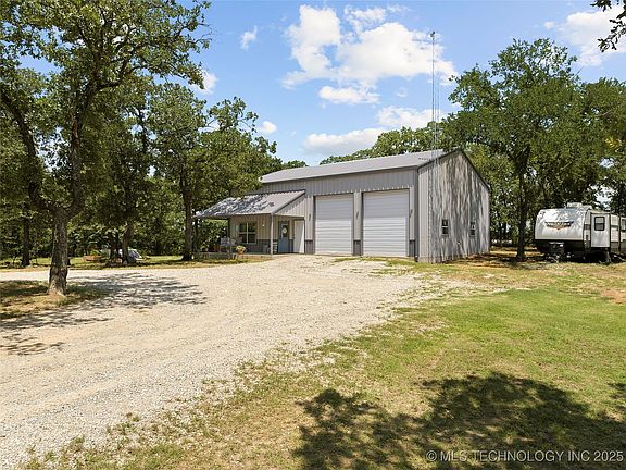 Welcome to this charming **3-bedroom, 2-bath home** nestled on **12 scenic acres** with rolling terrain and mature trees. Offering the perfect blend of privacy, comfort, and natural beauty, this property is ideal for a full-time residence or home away from home!~ The inviting **open-concept floor plan** seamlessly connects the living, dining, and kitchen areas. Features include **sealed concrete flooring, custom wood cabinetry, a shiplap backsplash, concrete countertops, recessed lighting, ceiling fans, and a butcher block island with seating.** The kitchen comes complete with **stainless steel appliances, new microwave and dishwasher (2025),** and a large walk-in pantry. The main level highlights a **spacious primary bedroom** with barn-door closet, a **full bath featuring a striking live-edge rock vanity,** and a convenient utility room. Upstairs, two additional bedrooms showcase plush carpeting, wood accents, abundant natural light, and three oversized closets. This flexible space easily adapts to your needs—guest rooms, home office, or creative studio. Year-round comfort is ensured with a **new HVAC and heat pump (2024).** A major bonus is the **30x40 attached insulated garage/shop**—offering 1,200 sq. ft. of workspace with two overhead doors, water, electricity, and a 10x12 storage loft. Perfect for hobbies, projects, or storing lake toys and equipment. Additional amenities include a **well house with full filtration system, storm shelter, seasonal creeks,** and a **circle drive.** Located just **30 minutes from Lake Murray** and ideally situated between **Oklahoma City and Dallas,** this property offers both seclusion and convenience. With so many opportunities—including use as a private home, weekend getaway, or even a potential Airbnb— Schedule your showing today!
