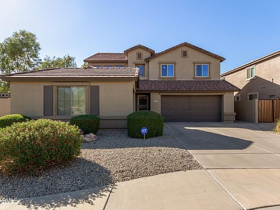 Newly painted interior! Location is EVERYTHING with this home!! Welcome to this charming 2-story home located in the heart of Queen Creek. Featuring 5 bedrooms, 2.5 bathrooms and a 3-car garage, this home is the perfect blend of comfort, style, and convenience, making it an exceptional place to create lasting memories. From the moment you step inside, you'll be greeted by a warm and inviting atmosphere. The spacious layout provides ample room for family living and entertaining, with an open-concept design that seamlessly connects the main living areas. Whether you're hosting gatherings or enjoying quiet evenings, this home offers the versatility to suit any lifestyle. With 2524 square feet of living space, this home is thoughtfully designed for both functionality and comfort. The well-appointed kitchen opens into a spacious living area, creating an ideal space for entertaining friends and family or simply relaxing after a long day. One of the 5 bedrooms is conveniently located downstairs, ideal for guests, in-laws, or a private home office. Upstairs, you'll find generously sized bedrooms, including a primary suite with its own private bathroom - a peaceful retreat perfect for unwinding at the end of the day. The additional bedrooms provide ample space for family members or the flexibility to create hobby rooms or workspaces. Upstairs also offers a built-in library area. In 2023, the home was upgraded with beautiful plantation shutters and new windows throughout, adding a touch of elegance while enhancing energy efficiency and natural light. Beyond the interior, the home's location shines as its greatest asset. Situated in a prime Queen Creek neighborhood, you'll enjoy easy access to top-rated schools, shopping, dining, and recreational amenities. Parks and trails are just minutes away, making it an excellent spot for outdoor enthusiasts. This home truly combines the best of both worlds: a charming, spacious interior with an unbeatable location. Don't miss your opportunity to make this Queen Creek gem your own!