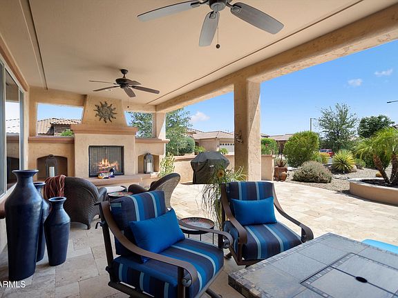 Experience refined living in this 2 bedroom, 2 bath + den home in the Desirable active 55+ community of Sun City Festival! This Energy-Efficient home features Solar, Granite countertops, Backsplash, Stainless steel appliances, Gas range, Pull-out shelving, Walk-in pantry, Reverse osmosis, and Water softener. The Epoxy-coated garage offers Abundant Storage cabinets. Outdoor living shines with a Charming side Courtyard with a Pergola, plus an Extended Travertine Patio with a cozy Fireplace surrounded by Mature Landscaping. Perfect for Entertaining or Relaxing. This home offers Elegance, Comfort, and Premier Community Amenities.