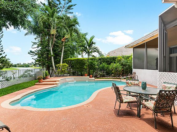 Located on a gorgeous lakefront lot in the highly desirable Boca Falls community, this property includes a split floor plan with 3 bedrooms plus an office (easily converted to a 4th bedroom) and 3 full bathrooms. Beautiful open kitchen with granite counters and granite backsplash, 42'' cabinets that opens to an oversized family room and breakfast nook. Other features of this home include a large master suite with high ceilings and custom closets, both guest bedrooms include there own bathroom, hurricane resistant accordion shutters, high impact garage door, Two Trane A/C units, extra large water heater, and custom draperies. The backyard includes beautiful lake views with a fenced landscaped yard, waterfall and freeform pool and a covered patio made for entertaining.