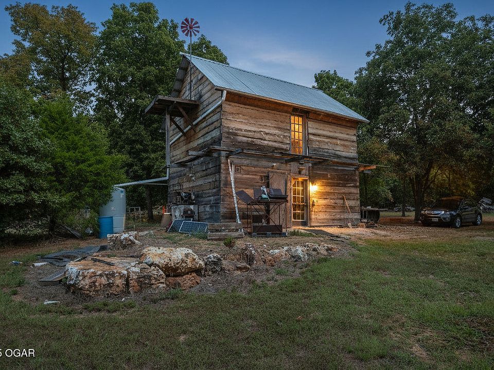 At the heart of the property sits an Amish-built, primitive two-story cabin with an attic—charmingly rustic yet functional. Inside, you'll find a cozy 1-bedroom, 1-bathroom layout designed for simple living. A wood-burning kitchen stove adds character and functionality, while a barrel wood stove keeps the cabin warm and inviting. The cabin is equipped with septic, offering convenience while still maintaining its off-grid lifestyle.