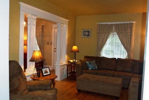 Charm & character throughout! Covered front porch opens to foyer w/hardwood floor, character wide wood trim & columned entry to living room. Updated kitchen w/tons of cabinets, new laminate floor & adjacent formal dining rm w/hardwood floor, window seat, wainscoating & snack counter + doors to new deck. 3 upper bedrooms + remodeled bath. LL den, full bath & laundry area. 2.5 car gar.LL SF p/seller
