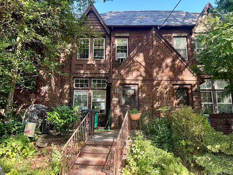 This beautiful Bayside one-family Tudor townhouse retains the character and charm of its original architecture, boasting beautiful high ceilings and hardwood floors throughout. The home features an entry foyer with a coat closet, a formal living room with a wood-burning fireplace, a formal dining room open to the eat-in kitchen, and a half bathroom. The second floor also offers a full bathroom, two bedrooms, and a spacious master suite. The basement, with access to the public driveway and patio, features a recreational space with a wood-burning fireplace, a storage room, a laundry room, utilities, and a new full bathroom. New windows and roof. The garage is accessible from the rear of the house. Conveniently located half a block from Bell Blvd. Quiet area but also conveniently close to supermarket, various restaurants. ALSO CLOSE TO Long Island Rail Road Bayside Station (LIRR).