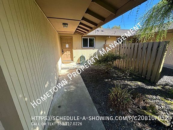 This cozy and charming duplex has been recently renovated and is move-in ready! Highlights include wood flooring in the kitchen and bedrooms, with carpet in the living room. The kitchen includes a dishwasher, a stainless steel fridge, lots of natural light, and a countertop pass-through window to the dining room. The living room is accentuated by a gorgeous wood-burning fireplace framed by a brick veneer. Washer/dryer hook ups in the garage. Features a private backyard with a cement patio, which backs up to a green belt. One car garage with automatic opener, electric heating, ready to hook up to Comcast cable and internet. Landlord pays water/sewer, and landscaping is provided. No pets, 12 month lease, Close to I-5, bus line, shopping and schools. NO SMOKING - NO ROOMMATES - NO PETS 12 month minimum lease. Close to I-5, bus line, shopping, and schools. 25-minute commute to JBLM. Please schedule all evening showings by 4:00 PM and all weekend showings by Friday at 4:00 PM. Failure to do so may result in your showing not being authorized. This home is MARKETED by Hometown Property Management and MANAGED by the HOMEOWNER. Fenced Backyard No Roommates Parking 1 Car Garage Parking 2 Spaces Stove/Oven Electric Washer/Dryer Hookups Wood Fireplace