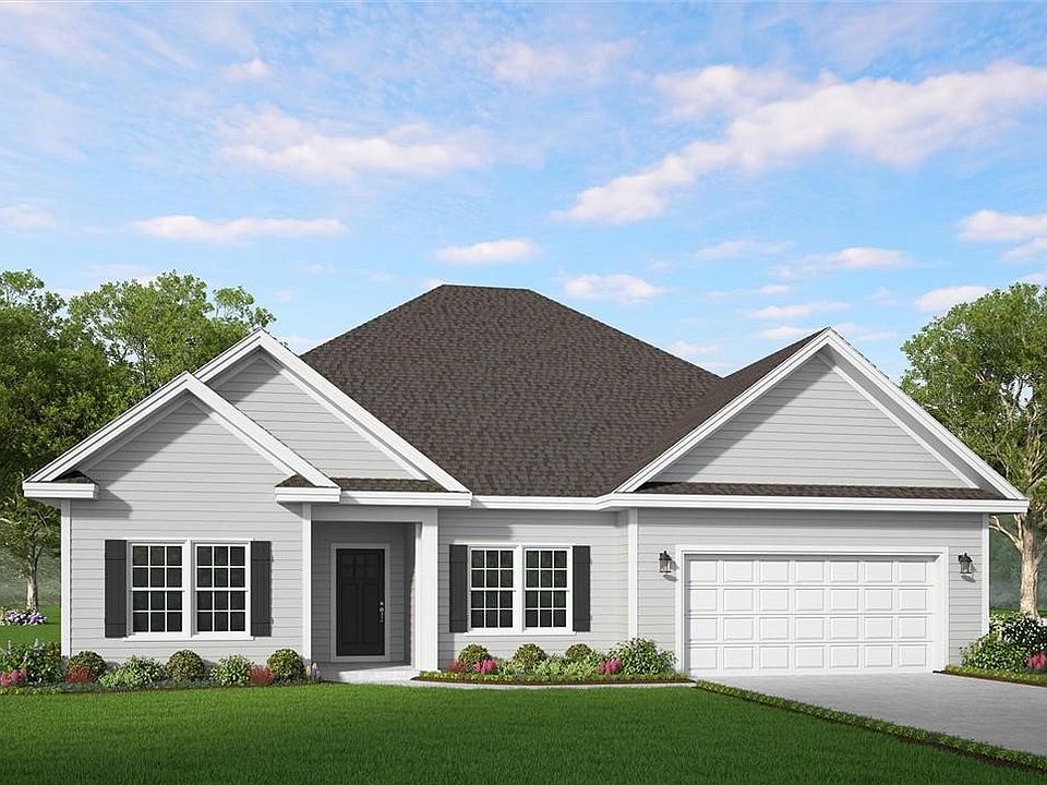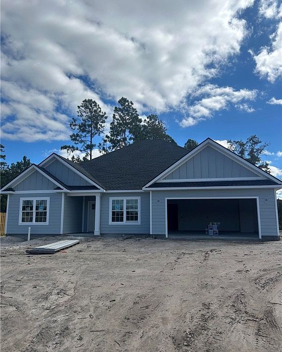 The Brooklet Plan is a single story home with 3 bedrooms and 2 baths. It's 1,821 heated sq ft. This open floor plan has granite countertops, LVP flooring in main living areas, primary bedroom, and laundry, carpet in the secondary bedrooms, and tile in the baths, wood shelving in closets and laundry room, and a framed glass shower door in primary bathroom. All stainless steel appliances (no refrigerator). This is a newer development within Carriage Gate Plantation. It's a gated community with great amenities, including a large pool, lounge area, fire pit, and a grilling area.
