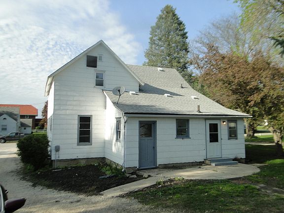 Lots of potential here! New roof and some nice hardwood floors. located on the edge of town on a half-acre lot.Hardwood floors! Great location, close to school, downtown. Great view of Hubbard prairie out back. The pocket door to kitchen, built in linen closet upstairs, cute pantry in kitchen, built in drawers in dining room, and built in shelves in living room. The open stairway and bonus closet next to stairs. High efficiency furnace. This is a cute, cozy starter home or for a small family.