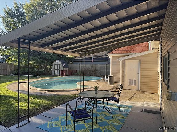 Welcome to this easy living three bedroom, one and a half bathroom ranch. The home offers a bright and functional layout with both a family room and a living room, creating plenty of space to relax or entertain. The kitchen features stainless steel appliances and a gas stove, while the first floor laundry adds everyday convenience. Step outside to a fully fenced backyard with a covered patio and a heated inground Gunite pool, perfect for summer enjoyment. With a newer boiler, new carpet, attic storage, and a new roof as of 2022, this home is move-in ready and full of great features.