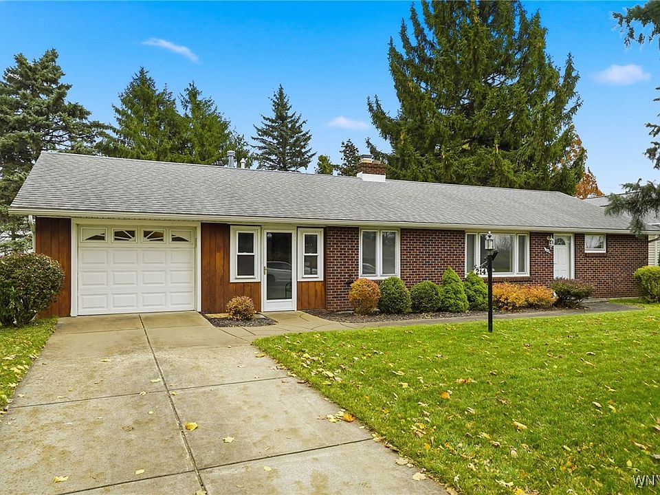 Cherished by its original owner since it was built shows in this lovingly well maintained classic ranch and ready for its next chapter. This bright 4-bedroom, 1.5-bath residence blends timeless charm with the ease of one floor living. Enter through a charming enclosed vestibule that offers a warm transition from the outdoors, ideal for greeting guests and storing coats or shoes. Extra bonus just installed high efficiency furnace, hot water tank and brand new gas stove (Nov 2025). Highlights include central air and gas fireplace, newer triple pane glass windows and exterior doors. The electrical service has been upgraded for modern convenience. Practical comforts abound: an attached garage with a separate work room, generous storage throughout including the insulated attic. A bright three-season room that overlooks a private backyard—perfect for morning coffee or relaxed entertaining. Great curb appeal with brick facade includes a concrete driveway and pretty path to the front door. Located in desirable town of Williamsville with the highly rated Clarence school district. This home is a rare combination of character, comfort, quality and close to all convenience. A treasure: 214 Berkley is such a special find!