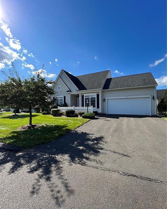 Welcome to Wyndemere, an award winning and highly sought after active adult community that is nestled in a quiet and tranquil setting in the Poquonock section of Windsor. This light and bright 3 bedroom and 3 full tiled bath(s) and 2 car garage home offers the convenience of one level living. Dramatic nine-foot ceilings and crown molding give it the spacious appeal offered in this free-standing home. This also leads to A 12x12 sunroom off the living room area accessed by French doors is beautiful with plenty of windows and sliders to a 8 x 12 private concrete patio. A spacious kitchen offers an abundance of Maple cabinetry, hardwood floors and recessed lighting. There are 2 bedrooms on the first floor One is the primary suite . This fabulous property features a third bedroom and 2 6-foot closets and a spacious full bath on the second level. There is the option to finish an additional room on the second level which would add an additional 360 Sq Feet. Desirable features include 2x6 construction, multi-zoned heating and cooling, a gas log fireplace, security system, hardwood floors, crown molding and interior fire sprinkler protection. Relax on the heated and cooled sunroom that overlooks the beautiful exterior grounds boasting mature landscaping and a lush lawn. A full dry basement offers an endless amount of storage. This incredible home is conveniently located to commuter routes, Bradley International Airport, Rainbow Reservoir, shopping & dining options.