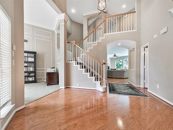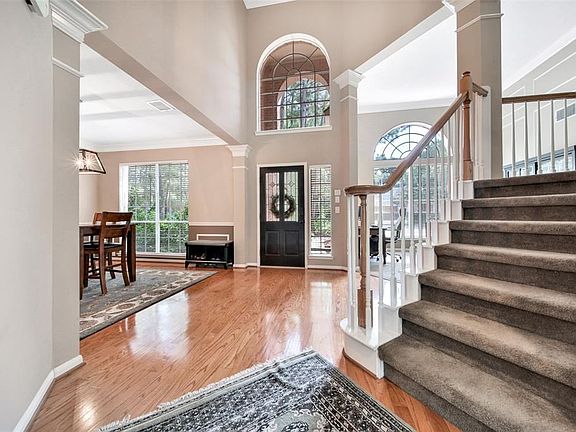 Stunning home with a glorious pool in highly desirable location of The Woodlands Alden Bridge! This home provides an open concept floor plan and features a both formal living and dining areas, large family room overlooking the gorgeous pool and spa, guest suite downstairs with a full bath, gourmet island kitchen, breakfast nook, and half bath down. Kitchen includes extensive cabinet storage and features thoughtful pull-out drawers, double ovens, gas cooktop, stainless appliances, double door wine fridge, and breakfast bars. Dual staircases leading up to a the second level with a game room and two secondary bedrooms. Incredible master suite with walk in closet and luxurious master bath. Master bath includes stand alone seamless glass shower with separate tub, his/hers and make up vanities. Lovely updates include, solid wood floors, kitchen remodel'15, pool re-plastered'18, fence'18, pool/spa heater '18, Upstairs AC'15, bedroom windows replaced'15, beautiful designer paint, and more!