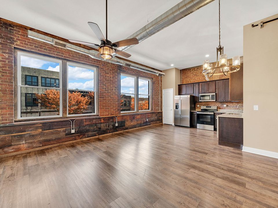 Estimated completion date is November 30th, 2025. Unit E is a 2 bedroom, 2 bath loft on the 2nd floor. Unit has oversized windows and Broad St. facing views.
