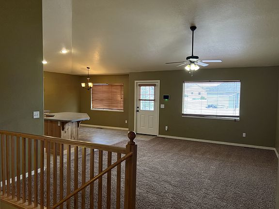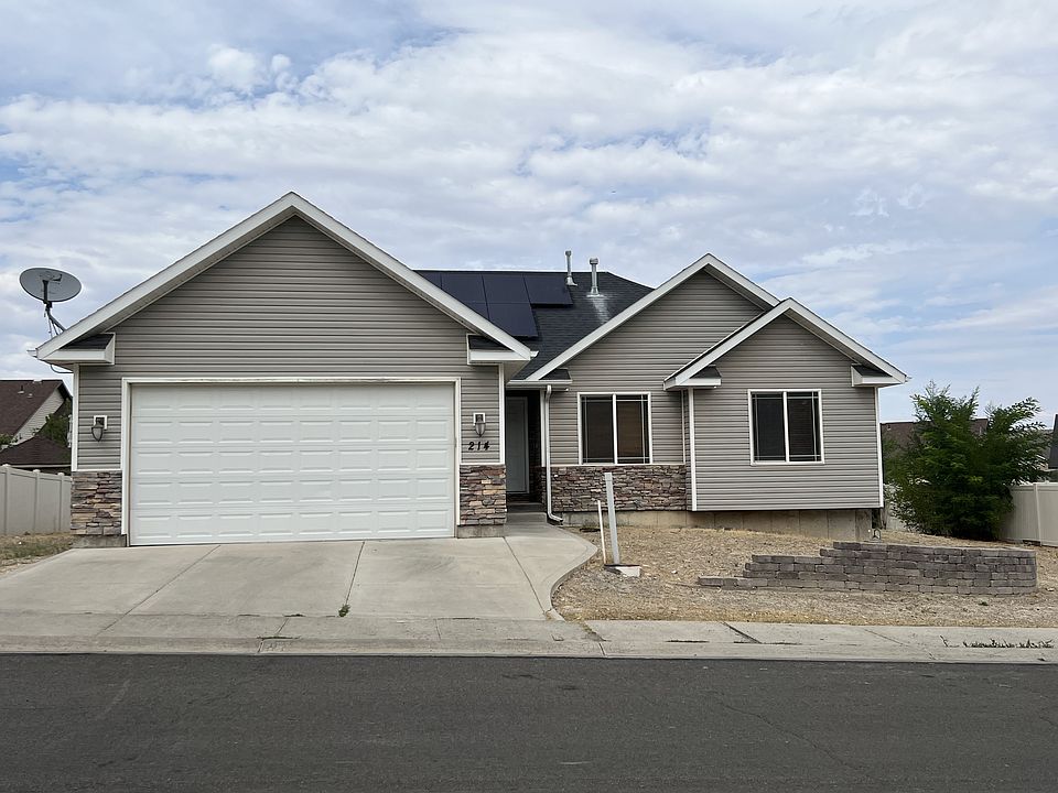 Welcome to this charming 3-bedroom, 2-bathroom home in Elko, featuring an attached 2-car garage. Enjoy your own driveway and additional street parking. Step inside the front door to find the open living room. Moving forward, you'll find the kitchen and dining area fully equipped with a refrigerator, stove/oven, dishwasher, and built-in microwave. Adjacent to the kitchen, you'll find a pantry and a door leading to the garage. For added convenience, the property includes washer/dryer hookups in a dedicated laundry room. Down the hallway, find the three carpeted bedrooms and an adjacent bathroom. The main bedroom features a walk-in closet and its own full bathroom. Going down the stairs, find the unfinished basement, perfect for storage. Outside, enjoy a wooden deck and a partially fenced backyard.