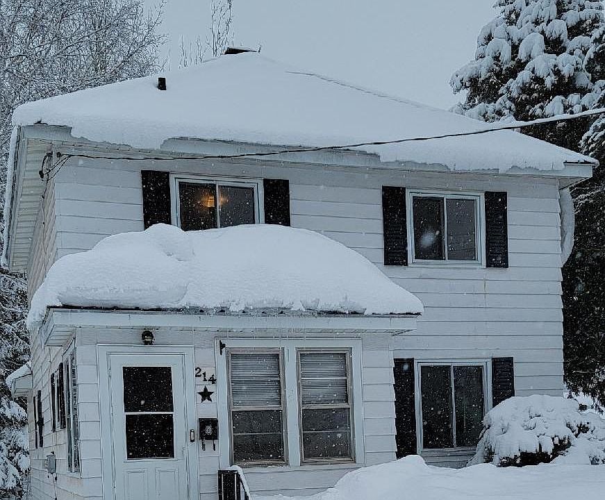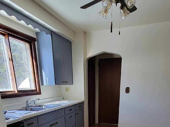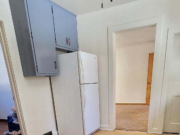GRANDMA'S HOME! This well maintained, freshly painted, home features a warm and inviting knotty pine front porch which offers access to the large living room with carpeting; a kitchen with wood painted cabinets, a first floor optional bedroom with hardwood floors which has been used as a laundry room with a washer and dryer installed in it plus a spacious modern full bathroom with a tub/shower plus a 12 +/-' vanity. The second floor offers 3-4 additional bedrooms, all connected, one of which could be a bonus/family/playroom. The kitchen floor has been removed and is ready for new flooring. All this sits on a large corner lot with a 2 car garage.