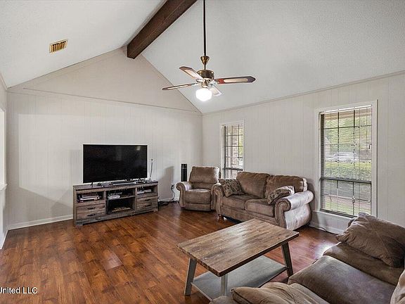 Welcome to this inviting 3 bedroom, 2 bath home located in the heart of Clinton, MS! Featuring a spacious living room with soaring vaulted ceilings, exposed beam detail, and a beautiful brick fireplace feature wall, this home offers the perfect setting for relaxing evenings or entertaining guests. The kitchen is equipped with ample cabinet space, a stylish tile backsplash, and a convenient breakfast bar that opens into the dining area. Just off the kitchen, you'll find a laundry/utility space for added convenience. All bedrooms are generously sized with plenty of natural light. The primary suite includes its own private bath, providing a comfortable retreat. Outside, enjoy the large, well-maintained yard with mature landscaping and a two-car garage. The brick exterior offers timeless curb appeal and low maintenance. This home is conveniently located near schools, shopping, dining, and all that Clinton has to offer.