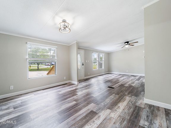Completely remodeled 3 bed, 2 bath home, split floor plan with over 1,700hsf!! This home has everything new, new roof, new HVAC, new kitchen cabinets, new butcher block countertops, new light fixtures, new bathrooms, new LVP floors and new carpet, NEW , NEW, NEW!! Stepping inside the home you will notice the large living room and formal dining to the right of the door, both with LVP floors, through the dining area you enter the kitchen and notice the huge island with gorgeous butcher block counters, large sink, and tons of cabinets and counter space. New stainless steel appliances that stay with the home. The kitchen is also open to the family room at the rear of the home with a fireplace in the corner. Off the family room is a huge master closet with a walk in closet and large master bath. The master bath is equipped with a large garden tub, stand-up shower with tile surround, and a double vanity. The other side of the home has 2 other bedrooms and a full bath as well. The laundry room is right off the kitchen and it even has doorway to the side of the home. Out back is a large deck that is perfect for grilling out and a huge fenced in back yard!! This home is minutes from the Hubert gate of Camp LeJeune and all shopping in Swansboro. Jacksonville is about 30 minutes away and the beach is also about 30-45 minutes depending on which beach direction you go. Schedule your private tour today!!