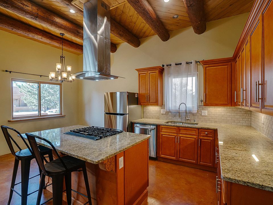 Discover modern comfort and quality craftsmanship in this beautifully appointed 2 bedroom/2 bath condo, built in 2022. Step inside to an inviting open floor plan grounded by stained concrete floors that add a contemporary style and low-maintenance durability. The warm color of the floor matches the warmth of the cozy gas fireplace-perfect and easy for relaxing in this quiet environment. The home is equipped with two efficient mini-split systems to meet your perfect comfort levels of heating/cooling: one in the living room and another in the primary suite. The primary has a walk-in closet, en-suite full bath and a door leading to a fenced and private outside area (perfect for a hot tub and a pet). Another bedroom and another full bath create space and privacy for owner and guests. There is also in-unit laundry, the HOA is reasonable, and the setting tranquil and quiet (with only one shared wall). Reach out today for showing!