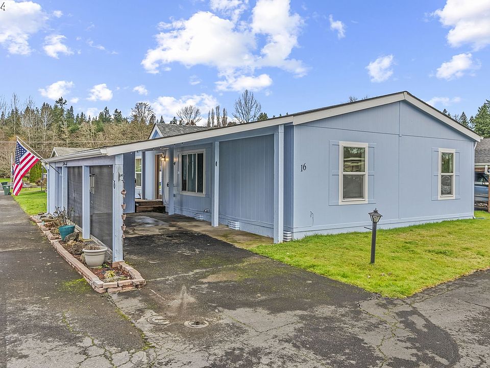 Edgewater Estates 55+ Mobile home in park like setting along the Cowlitz River with full River access. This 3-bedroom, 2 bath home built in 2016. This home has been very well maintained and tastefully updated. Spacious kitchen and living room is open and inviting with large island with lots of counter space with new vinyl plank floors. Primary bedroom has private bathroom. Has heat pump, wired for generator. Space rent includes water and sewer plus use of club house. This home is move-in ready. Lots of storage and covered parking.
