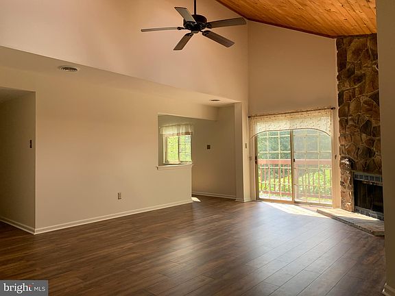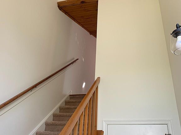 Step into this 3 story end unit condo at the ground floor where you'll find an oversized closet for storage, coats, boots etc. Bathed in natural light ascend the staircase to the bright & sunny living room featuring a soaring natural wood vaulted ceiling with 2 NEW skylights, a corner stone fireplace (for aesthetics only - fireplace may not be used) and access to a nice size deck/balcony. The living room has been freshly painted and there is newer luxury vinyl plank wood look flooring plus a bonus closet. This 3 level (Entry level/Main Level/Upper Level) contemporary style Lindenfield condo boasts 2 bedrooms & 2 full baths. Adjacent to the living room is the eat-in kitchen with painted pale gray wood cabinets, stainless steel sink, brand new counters, electric range/oven with range hood, stainless steel sink with garbage disposal, built in NEW dishwasher and refrigerator. There is ample space for an eating area right next to a large sunny window. Down the hall on the main level is the utility closet with heater/hot water heater, NEW stacking washer/dryer unit, a full bath with linen closet and a bright, carpeted bedroom with a large sliding door closet. The upper level houses the Primary Bedroom with a full wall of sliding door closets, w/w carpeting, a large window to enjoy the pretty view and a full bathroom updated with a navy blue vanity with soft close doors. There's access to a floored walk-in attic storage room off the hallway too. Available immediately. Owner may consider one dog on a case by case basis. If approved an additional $50/month rent will be required.
