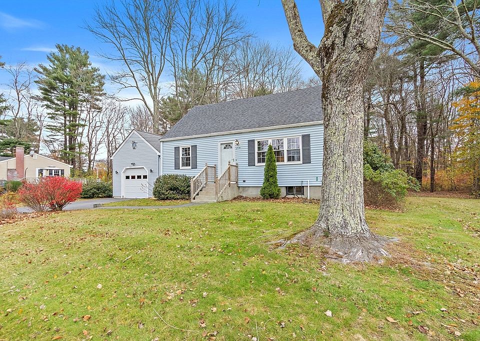 Charming and versatile Cape in a convenient Franklin neighborhood location near Routes 140 & 495, the Forge Park commuter rail and office park, shopping, and some of the area’s lowest fuel prices. The inviting kitchen features granite counters, upgraded cabinetry, stainless-steel appliances, and gas cooking. A bright living room with fireplace and formal dining room provide welcoming gathering spaces, while the first-floor office/family room with slider to a spacious deck offers easy access for outdoor entertaining. May have potential to be used as a first floor bedroom. One full bath on each level adds comfort and flexibility. Upstairs, three bedrooms feature beautiful wood flooring, including a large primary with walk-in closet. Additional highlights include central air, an attached garage, full basement with bonus room, and key updates: architectural shingle house roof (~15 yrs), water heater & A/C condenser (~2018), and newer windows (2024). Move-in ready and close to everything!
