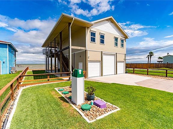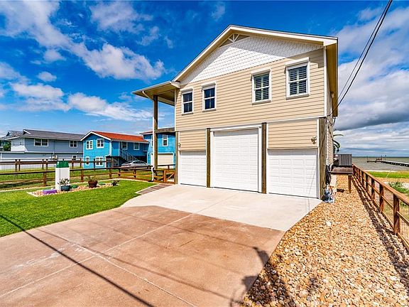 This custom built Copano Bay front home won't disappoint! This owners thought of it all! The kitchen features custom built cabinets, granite counter tops, propane gas stove top, stainless steel appliances and an actual vent a hood. From the open concept living area you have bay views from almost ever angle. Custom plantation shutters through out the house. There are three generous sized bedrooms and two full baths with walk in tiled showers and granite counters tops. From your wrap around deck you'll enjoy a constant bay breeze and sipping your coffee while watching the dolphins play in the bay. Have a boat or an RV? There is a 1519 sq. ft. garage with a 13 foot ceiling and a 10 x 12 center door to accommodate parking those toys. Storm coming? Not to worry, there are roll down hurricane shutters that make preparing a breeze. The home also comes equipped with a lift to make hauling groceries upstairs a breeze. Come drop a line off of your own private dock before it's too late!