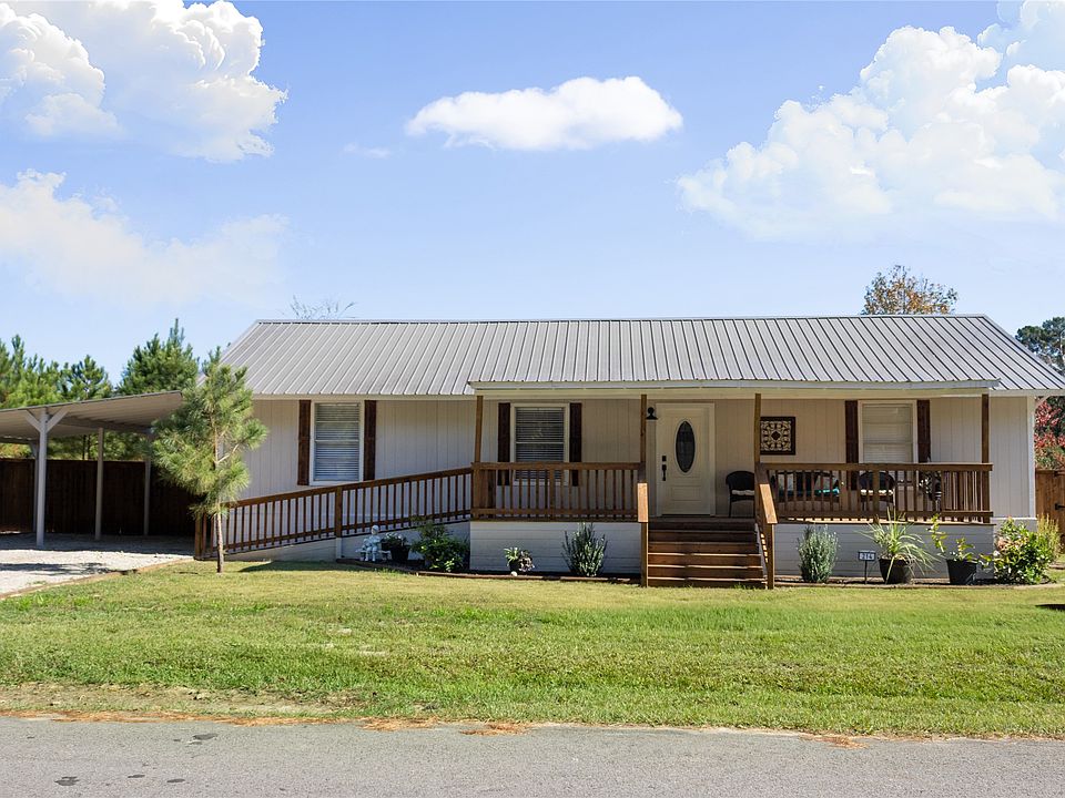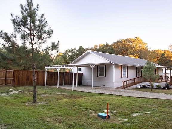 Welcome Home to this completely updated and thoughtfully designed 3 bedroom, 2 bathroom home nestled into a serene setting surrounded by pine trees just beyond city limits. The open floor plan flows seamlessly from the bright living area to the stylish kitchen, complete with a center island for extra seating and prep space. You will also find a pantry and plenty of cabinets for storage. All three bedrooms are generously sized, providing plenty of room for furniture and comfortable living. Ceiling fans are installed throughout the home, offering added comfort and energy efficiency year-round. The primary suite includes its own full bathroom for privacy and convenience, while the additional bedrooms share a well-appointed second bath. Outdoor living shines here, with a brand-new front patio that welcomes guests and a spacious back patio designed for relaxation and gatherings. The back yard has a brand new privacy fence and a storage shed complete with electricity. Enjoy the quiet, private atmosphere while still being only minutes from town.
