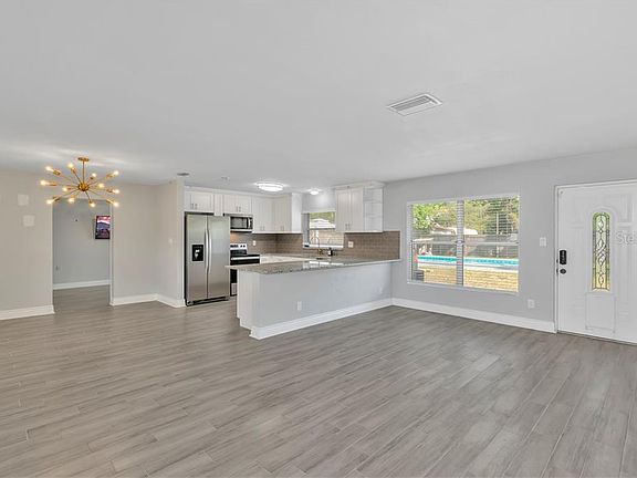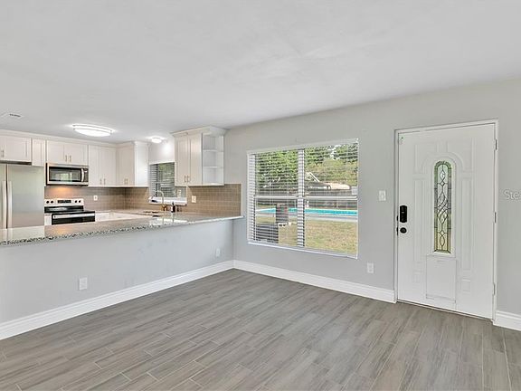 Adorable 3 bedroom, 2 bath, pool home located on an oversized corner lot in a quiet neighborhood in Debary! This inviting open floor plan has a kitchen/dining room/living room combination. The entire house has been updated! The home has newer ceramic floors throughout, new AC, new water heater, metal roof and newer flat roof (2019). The kitchen features white 42" cabinets, stainless steel appliances, gorgeous backsplash and granite countertops. This house is light and bright with beautiful oversized windows overlooking the backyard. DeBary is conveniently located close to plenty of shopping, dining, I-4, Sunrail, the St. Johns River and is 30 minutes to Downtown Orlando or beaches (New Smyrna and Daytona). Schedule your private showing today before this one is gone! This property may be under audio and visual surveillance.