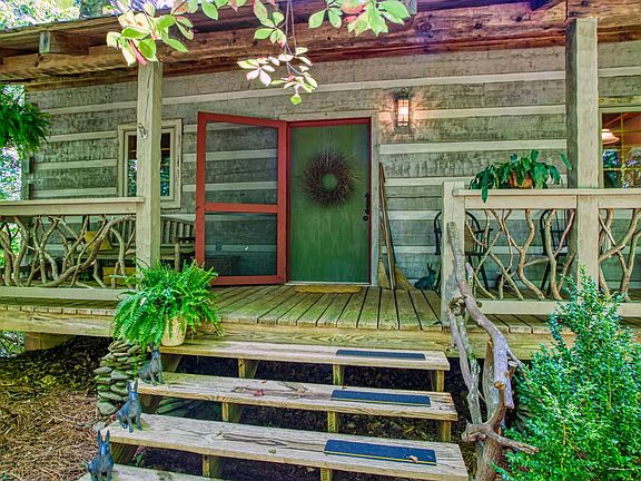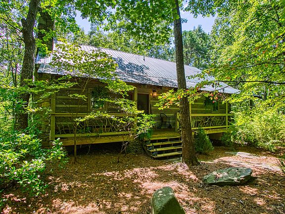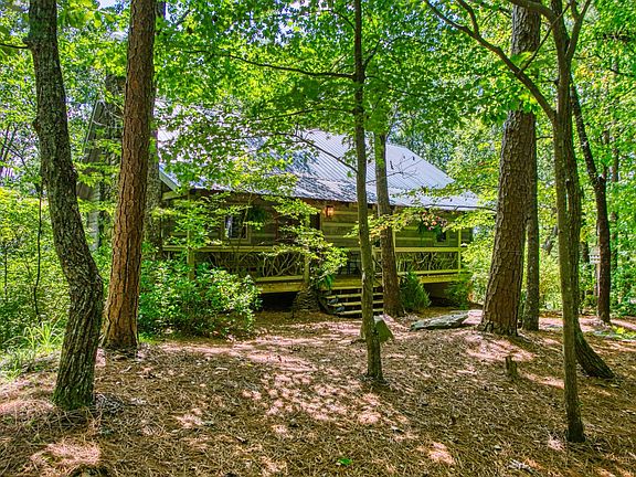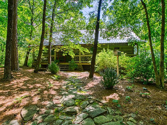 One of a kind storybook cottage nestled in the woods in the North GA mountains. Situated on +/- 6.6 wooded acres directly behind Sharp Top mountain in Grandview Lake, this log cabin offers serenity and nature at its best. Custom built by Hearthstone log homes, this home features hand hewn logs & beams throughout. Features of the home include a rocking chair front porch, custom twig railings, stone pathways/patio, screened in back porch, one car garage, Generac generator, double furnaces w/ one being wood fired, finished basement, vaulted/beamed, fireside family room with stone, Rumford fireplace, hardwood floors throughout, cozy library area w/ built-in bookshelves, large dining area w/ french doors to the screened in porch, renovated kitchen w/ large granite island, pine butcher block countertops and a walk-in pantry. There is a main floor bedroom suite w/ double closets and an updated bathroom w/ marble countertops. Upstairs features a huge loft w/ skylight & an oversized primary suite. The primary suite features vaulted beamed ceilings, built in drawers along one wall, walk-in closet, tons of storage & an updated bathroom w/ a double, granite vanity. The basement level features a drive under garage, large utility/laundry room, finished bathroom, office and bedroom w/ access to the covered stone patio. The gorgeous lot is complete w/ mature landscaping, gated driveway & a private fire pit area. Ownership stake in a lakeside lot w/ dock is also included in the sale.