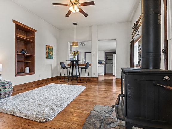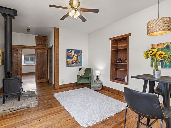 Adorable home in Oak Creek, just 21 miles from Steamboat Springs this home offers a great opportunity for a multitude of buyers as it is zoned mixed-use. Rustic and charming with original hardwoods, this property is ripe for adding your own touch. Cozy up with the newer wood burning stove and enjoy the convenience of downtown Oak Creek with nearby restaurants, cafes, shopping and services. In 2021, the home received new fiber cement siding and trim with Tyvek wrap, so you won't need to worry about exterior painting and wear and tear for years to come. Other improvements include newer windows, wood stove, trim and drywall in bathroom and a chicken coop. There is a bonus room that has been used as a smaller bedroom in the past, but could be a nice office, workout room or flex space for storage. The bedroom currently has a built-in murphy bed and the home can easily be heated with the wood burning stove with back-up electric baseboard heating. Two storage spaces adjacent to the main home, so you can store all of your toys or create a workshop, studio, you name it! Enjoy access to acres and acres of outdoor recreation with a short drive to Stagecoach or the surrounding Flat Top Wilderness areas where skiing, biking, boating, floating, hiking, fishing, hunting are abundant. There are trails in town as well as a community ice rink, winter Nordic trails on a nearby ranch and small town charm. Enjoy small town living just outside of Steamboat and super close to Stagecoach State Park and Sarvis Creek Wilderness areas! (Important, this home needs some work and being sold as-is)