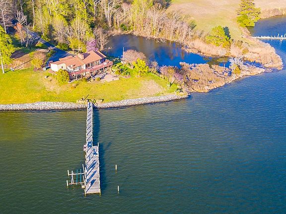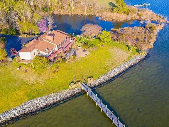 GORGEOUS waterfront point with HUGE views the Great Wicomico River!! No flood zone with sweeping 180 degree views! Best Breezes, Best Fishing near the Chesapeake Bay, catch the tastiest Blue Crabs or grow your own Oysters! Private Pier with 5-6'MLW with Boat & Jet ski lifts. 522' of shoreline with Rip Rap. The Main Floor of the home is one large open room with a Living Room, Dining & Kitchen area. The Living Room has a wall of sliding glass doors, great views, & a raised hearth fireplace with gas logs. There is a 3-season porch & a full waterfront deck. The main floor has a waterfront Master Suite with private bathroom & huge walk-in closet. The Basement has a Family Room with a wood burning Fireplace, two guest rooms, guest bathroom, workshop with washer/dryer. The basement walks out to a waterfront patio & has easy access to the Pier. Up the hill, there is an oversized 2-Car Garage with an attached workshop & steps upstairs to 2 rooms. Lovely waterfront neighborhood! Roof was done 2015. Composite Deck done 2018, with side ramp. Home being sold as-is, home inspections done for information purposes only. Aggressively priced to sell! Hard to find Views like these & Deep Water!