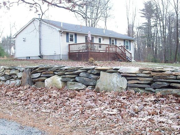 Title five approved! Young, spacious Ranch on nice corner lot with over an acre of land with nice stone walls. Recent updates include Stainless Steel double oven and refrigerator, hardwood, tile floors, Triple pane vinyl tilting windows, Central AC and Architectural roof shingles! Large eat in Kitchen with double door to access rear deck. Easy one level living including large laundry room. Front porch (8 X 6) and large rear deck (29 X 9) give you options to sit back and watch the World go by or have a nice place to entertain family and friends. Solid construction includes 6 inch walls and lots of insulation to keep your energy costs low. Vent in Living room wall for propane stove. Full basement for future expansion! Come see your next home!