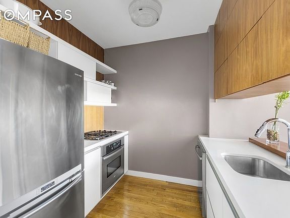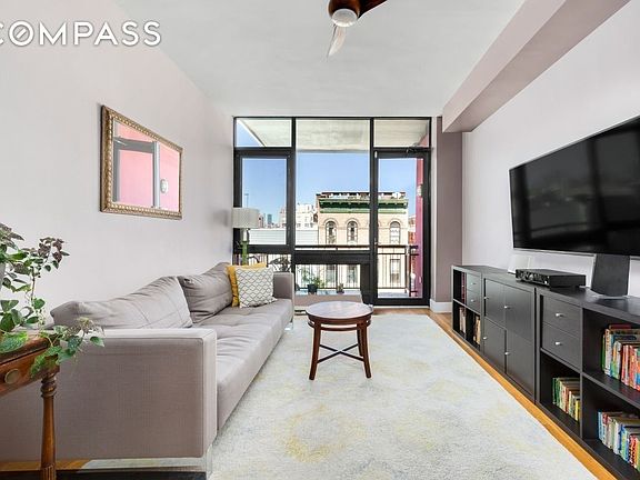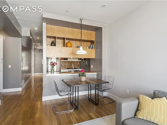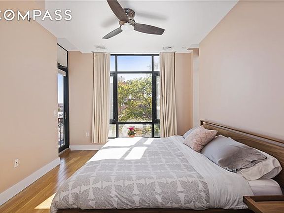 Welcome home to your spacious and sun-filled 1015 square foot two-bedroom/two-bathroom Greenpoint condominium with private outdoor space. Upon entering into a generously proportioned living and dining area, you are immediately struck with stunning open Manhattan views. Floor-to-ceiling glass windows bathe this unit with sunlight all day long. Off the living area is a well-sized private balcony, perfect for entertaining, outdoor dining or a morning cup of coffee. The open graciously designed kitchen is equipped with top level modern appliances and finishes including an exquisite combination of walnut and white lacquer cabinetry with self-closing drawers and Chroma Quartz white countertops. This well-thought-out floor plan offers impressive functionality with both bedrooms separated from the living area allowing for maximum privacy and a quiet reprieve. The master bedroom is a peaceful, sun-filled oasis with gorgeous treetop views. Step out onto your second private outdoor balcony to enjoy a breath of fresh air. The master en-suite bathroom features a luxurious windowed stall shower with black porcelain tiles and French oak vanity. The second bedroom delivers excellent space with corner exposure and gorgeous morning sunlight flooding in from the south and east. Unit 4A is complete with four exposures, in unit washer/dryer, central A/C and beautiful white oak hardwood floors throughout. With abundant closet space in the unit and your very own private storage room, there is no shortage of space for all of your belongings. 214 Green Street is a well-maintained boutique elevator condominium building that offers all residents an onsite fitness center and roof access with jaw dropping views of Brooklyn and Manhattan. Located in the heart of Greenpoint, you are close to the Brooklyn waterfront and water taxi, the G train at Greenpoint Ave, the 7 train at Hunters Point and multiple bus lines. Best of all, the extremely low common charges and a 421-A tax abatement in place until 2026 make this apartment an excellent investment. Please contact us for a private showing.