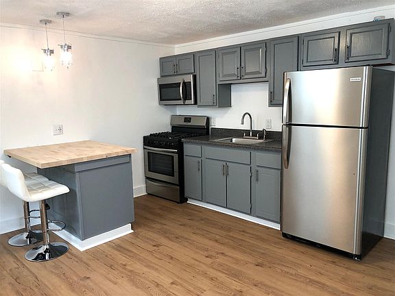 - Exterior features: 2 seater island, Garbage included in rent, Landscaping included in rent, Snow Removal included in rent, Water included in rent, butcher block countertop, stainless steel appliances, stand up shower