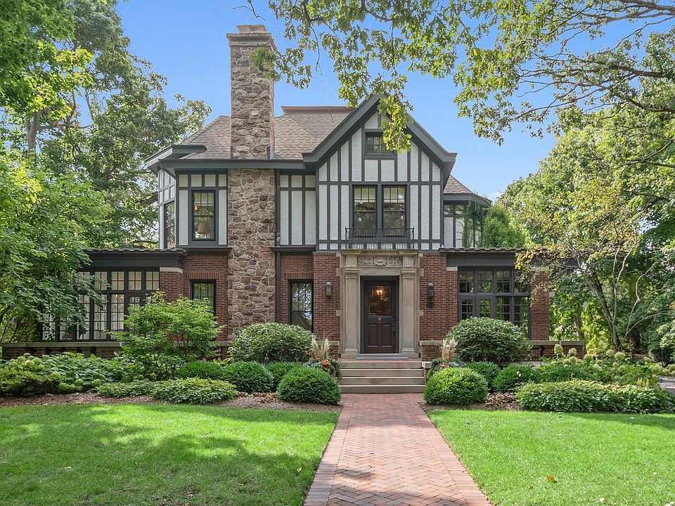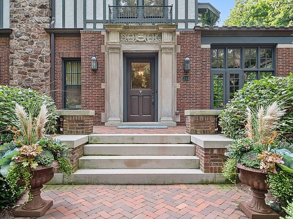 Welcome to 214 Greenwood, Evanston, Illinois. This landmark 1897 Tudor was originally designed by Harvey L. Page which has been lovingly restored by the current owners to seamlessly blend original historic architectural details with modern luxury amenities throughout. This stunning residence sits on two thirds of an acre parcel located on one of Evanston's most sought-after locations, east of Sheridan Road, steps off of the lake. This spectacular residence exudes warmth and luxurious comfort from the minute you enter. Light pours in the grand foyer and gorgeous staircase accentuated with custom wrought iron handrails and leaded glass windows. The spacious living room and dining room is appointed with hand crafted wood floors, fibrous ceilings and marble fireplace. Early morning light showers in from the sunroom and sitting room with tile fireplace. The family room adjacent the kitchen, featuring wood ceiling beams and separate fireplace. There is a cozy wood paneled library leading you from the side entry to kitchen. The kitchen with custom cabinetry, stainless steel appliances, heated floors with a separate eat-in area with wrap around windows. The expansive second floor features a large landing with sitting room; spacious primary bedroom with fireplace and luxury bath. Four additional bedrooms and three bathrooms for a total five (5) beds and four (4) baths on the 2nd floor. The third floor offers a media/recreation room, prewired for surround sound with built-in speakers. The historic design is not lost with the original diachronic art glass skylights. There is an additional guest room and office with a full bath at this level. The historic coach house/horse barn and stable located in the back of the property serviced by a paved driveway has been completely renovated. Many of the original building components were repurposed and used in the renovation. Entering thru the coach house original barn door, there is a kitchen and entertaining area designed for both indoor/outdoor living. The original "Tac" closet has been repurposed as the 1st floor powder room. The coach house 2nd floor features a one bedroom apartment with separate entrance above the two and half car heated garage. Just outside of the coach house in the rear yard, there is an inviting, 10' round, outdoor gas, stone firepit great for entertaining year around. The professionally landscaped yard features a separate stone patio and grill just outside the primary kitchen and rear entrance to the back yard. The rear yard features raised vegetable garden containers, as well as an outdoor shower and basketball hoop.