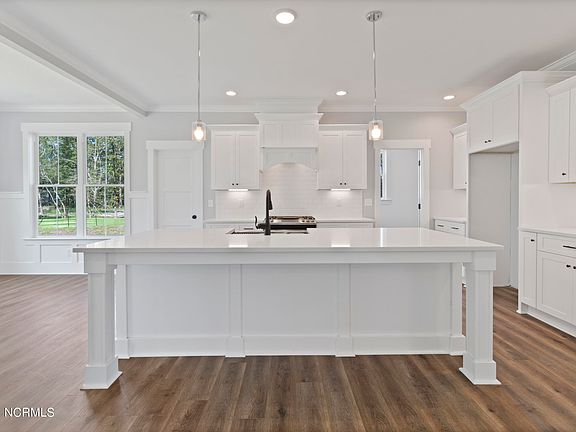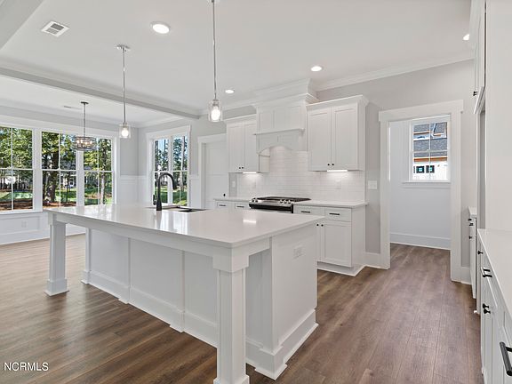 Check out the impressive included features on the last Hydrangea in Phase 4! 4 bedrooms, 3.5 bathrooms. Walking up to this home you are greeted with two large 8' front doors and metal accent roof over the covered front porch. Huge foyer leads into the Great Room with gas fireplace, shiplap mantle accents and built ins on both sides of the fireplace. This open floor plan provides plenty of natural light with the oversized telescopic doors in the back & breakfast nook with triple windows. Kitchen features quartz counters, large island w/ farm sink, tile backsplash, stainless steel appliance package featuring gas cooktop, wall oven/microwave, custom wood cabinets w/ soft close doors & drawers plus under cabinet lighting. This kitchen offers a full walk in Pantry with all wood shelving. Mud room off the garage with drop zone and large laundry room with laundry sink. Master Bedroom has full crown molding and barn door as you enter the bathroom. Full tile shower with rain head plus wall mount, dual vanities and walk in closet with all wood shelving and built ins. Oak wood stairs lead you to the second floor where there are 3 bedrooms. One offers a private suite having its own full bath while the other 2 bedrooms have a shared jack-n-jill bathroom combo. In addition upstairs features a loft perfect for entertaining space or home office. Full Bonus Room over the Garage. Outdoor entertaining space is found in the 29 ft. screened in porch across the back of the home with concrete grilling pad. Finished 2-Car Side Load Garage. Sod & irrigation on front, sides and back yard plus a separate well just for irrigation. Plenty of space in the back yard for a pool! Crown Pointe features double sidewalks, new pool & clubhouse and best of all a waterfront dock with gazebo, kayak launch and day dock. Topsail School District and only 10 minutes to Surf City beaches. $10k Use As You Choose Concession can be applied towards Closing Costs & 365 day Rate Locks!
