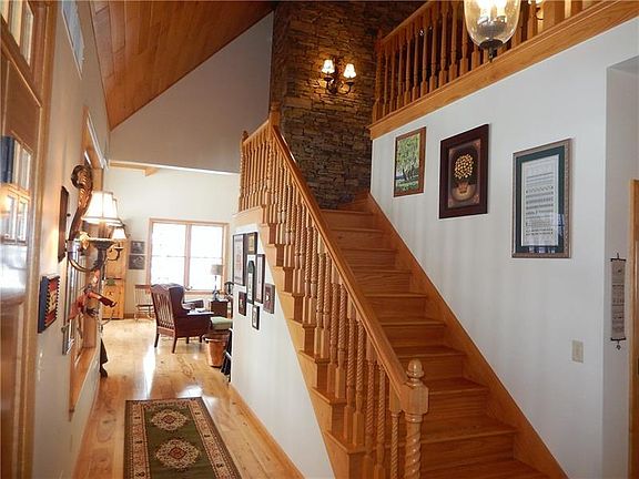 Located in Springfield Twp., this one and a half story style home has 3 bedrooms, 2 full baths and 2 half baths. 214 Harris Road is situated in the Connellsville Area School District.This home also has off-street parking with 4 spaces, 2 fireplaces, ceramic tile, hardwood, wall to wall carpet floors, electric, heat pump heating, and central air cooling. This custom built Craftsman Style home is nestled on 18.7 wooded acres, minutes from 7 Springs and has over 4,000 finished sq ft Quality is evident throughout this Stone and Hardi-plank home with many built-ins, Hickory hardwood floors, cathedral ceilings, 1st floor guest room, in-house speakers, covered front porch with composite floor, large rear composite deck, poured concrete foundation, 28' ceiling and stone fireplace in the great room. The chef's kitchen has Red Alder cabinetry, commercial style stove, large island, walk-in pantry and solid surface counters. The lower level features an expansive L-shaped game room complete with wet bar, wood burner, beer tap, cozy sitting area, built-in study area and 1/2 bath. You'll love the master suite with walk-in shower in the bath. For dog lovers - there is a 12x14 mudroom has a dog shower and an underground dog fence. A substantial shed/garage is ideal for lawn care equipment plus a fruit orchard.