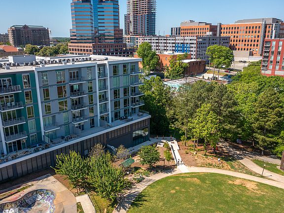 **For Sale or Rent - Inquire for Details** Tax Abatement Eligible** - Discover modern living at Unit 408 in The Vega, a 1-bedroom plus flex room, 2-bathroom condo in the heart of Downtown Durham's Bull Pin District. This residence boasts an open floor plan, soaring ceilings, and expansive windows that fill the space with abundant natural light. The sleek kitchen features stainless steel appliances and a large island with a waterfall-edge quartz countertop. The luxurious primary suite includes a walk-in closet, an en-suite bathroom, and hardwood floors. Step out onto the private covered balcony through the 10 ft wide sliding glass door to enjoy breathtaking cityscape views. This property benefits from a special tax exemption for the first 5 years of ownership and is grandfathered into the building's rental allowance. The Vega, located at 214 Hunt Street, places you steps away from Durham's finest dining, including the Durham Food Hall, charming cafes, local shops like the Durham Farmers Market, and vibrant entertainment venues.