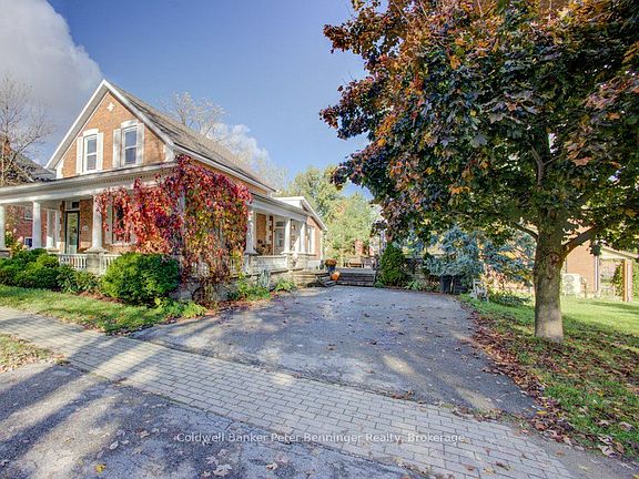 Good solid brick home on a corner lot waits for its new owner, plenty of features to please someone who hasn't found their special home yet. Home borders near the lot line on the west which leaves plenty of room for a large side deck and yard. Almost lives like a double lot. Wrap around covered porch really adds to function and curb appeal! Front formal and back entry doors lead to attractive living spaces and a practical floor plan. Back addition features the Family Room, main floor Bathroom and Laundry room with a back door opening to a porch and the Garden Shed. Kitchen has been updated with an attractive island and open concept to the Dining-room space. Second floor has the second full bathroom and two roomy bedrooms with bright windows. Driveway can hold up to 4 vehicles and the property is located close to the Rail Trail and the Teeswater River. 1 Block away offers all the amenities in the Village of Paisley. 22 km's from the Bruce Power Visitor Centre and a 15 minute drive to the sandy beaches of Port Elgin, there is much to be considered here. Quality of life and affordability.