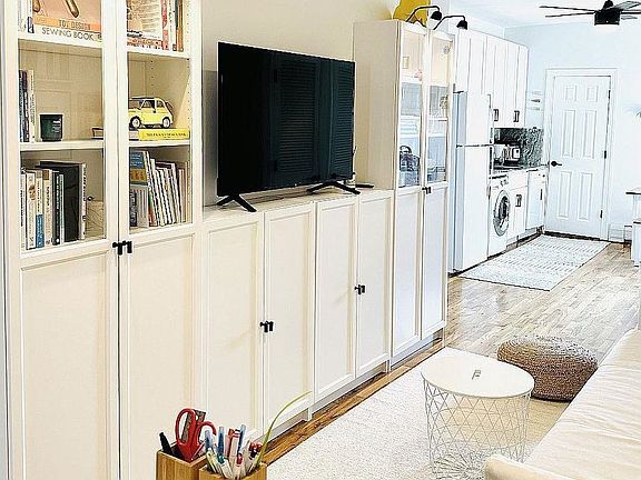 AVAILABLE APRIL 1 FURNISHED RENTAL possibly rented unfurnished. Sunshine galore fills this beautiful renovated 1 bedroom/ 1 bath on desirable downtown Jefferson St. Stunning modern kitchen features white shaker cabinets complimented by granite countertops, dishwasher and microwave. Living area with high ceilings and recessed lighting, Renovated bath boast classic tiles and vanity, Other amenities include combo washer dryer in home, two ceiling fans, decorative mantle, window AC and hardwood floors throughout. New heating system. Relax in the large common backyard, Close to NJ transit bus, PATH, Light Rail, shopping and nightlife. Sorry no pets