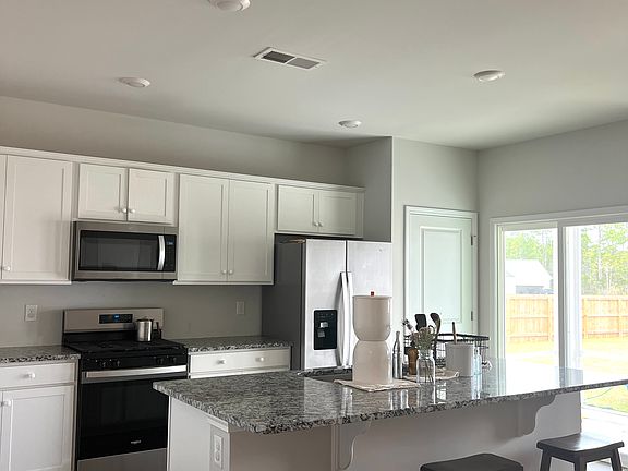 New construction in Newport NC. This home is located in the beautiful Ballantine Grove community on a large corner lot. This home is a 3 Bedroom 2 Bath with an open floor plan. The kitchen comes equipped with granite countertops and stainless steel range, dishwasher and microwave. It has a gas range and a gas tankless hot water heater. The primary bedroom has a private bath and walk-in closet. There is a covered patio in the back that will also be screened in. The yard is fully fenced with a garden, gravel patio for entertaining, and a playground for littles - pets are considered! Ballantine is in a prime location with beaches in either direction, coastal living, boat ramps nearby, and easy access to all shopping. 20 minutes to Atlantic Beach. 20 minutes to Emerald Isle. 30 minutes to Cherry Point. 45 minutes to Lejeune. 18 month lease. Dec 15 move in. Photos are furnished as we are currently living here - it will come
