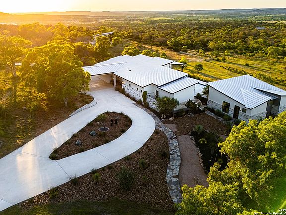 Experience unparalleled luxury in the heart of the Texas Hill Country with this exceptional modern ranchette estate, a true sanctuary that seamlessly blends nature's grandeur with refined elegance. Spanning over 12 private acres, this one-of-a-kind residence is perfectly situated just outside San Antonio in the charming town of Comfort, Texas. Nestled on the tranquil hillside at the rear of a gated estate, it offers unparalleled seclusion while still providing convenient access to city amenities and the San Antonio International Airport, making it ideal for both relaxation and effortless travel. Step inside to discover an expansive sanctuary where floor-to-ceiling windows frame breathtaking panoramic views of rolling hills and endless natural beauty, inviting the outdoors in. The thoughtfully curated interior merges natural stone accents with sophisticated textures, cultivating a warm yet modern ambiance throughout. Architectural mastery is evident in sleek, seamless lines that harmonize with the landscape, creating a perfect synergy between indoor and outdoor living. Floor plans designed for effortless entertaining boast spacious areas that open onto the sprawling outdoor terraces, where you can unwind by your luxurious pool or gather at the stylish Car Bar cabana-a vibrant setting for hosting friends and family. Imagine waking each day immersed in awe-inspiring vistas, with the rising sun casting a golden glow over your private paradise. From dawn to dusk, each moment offers a new perspective-an evolving masterpiece of natural beauty and refined comfort. For your guests, a private guesthouse provides an equally indulgent experience, ensuring everyone enjoys their stay in comfort and style. This estate is more than just a home-it's a lifestyle of exclusive luxury, serenity, and effortless elegance. Discover your new sanctuary in Comfort, where exceptional living begins and every moment is touched by beauty. Welcome to your Hill Country retreat-where nature and luxury unite in perfect harmony.