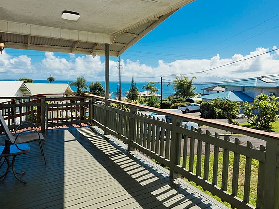 Enjoy views of Bayfront Hilo, the Pacific Ocean, and the distant glow of Kilauea Volcano from the deck, perfect for taking in beautiful sunrises over the bay. Located just three miles from downtown Hilo, you'll have convenient access to grocery stores, swap meets, restaurants, and a variety of cultural events. Nearby natural landmarks, including Rainbow Falls (3 miles), Akaka Falls (7.5 miles), and Honolii Beach, provide opportunities to explore the island’s beauty. Essential services, such as the Hilo Benioff Medical Center and local schools, are also within a short distance.